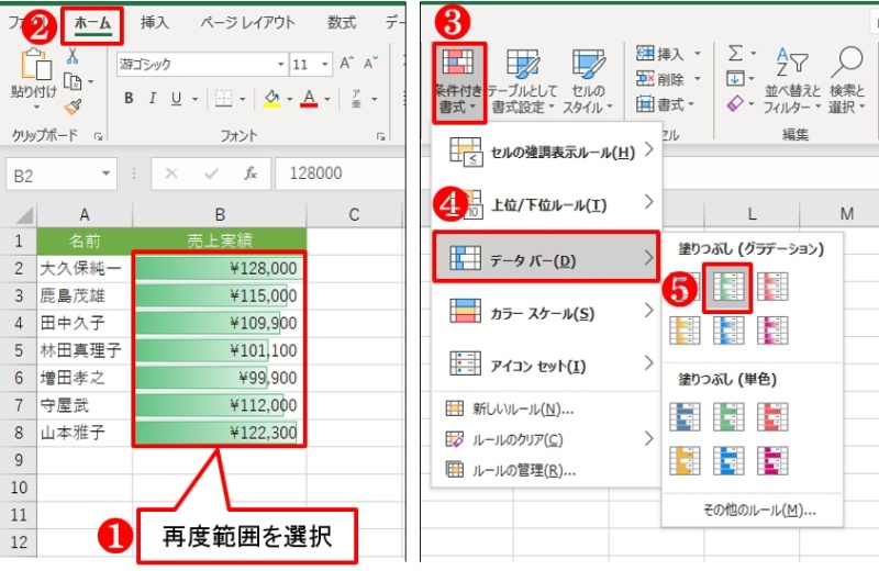 Excelの データバー で手軽にビジュアル化 メリハリ付け違いを強調 日経クロステック Xtech